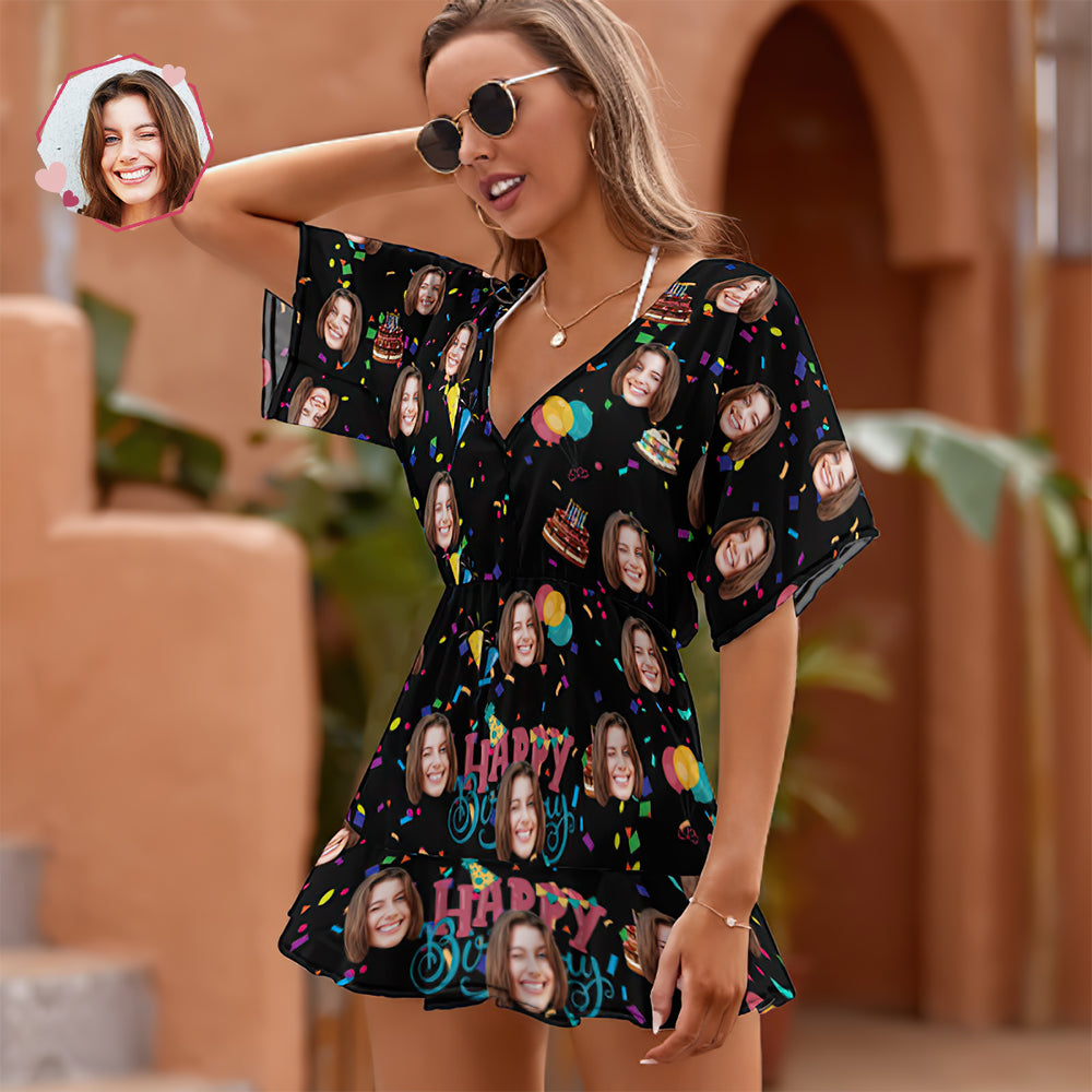Custom Face Beach Wrap Happy Birthday Cover Ups