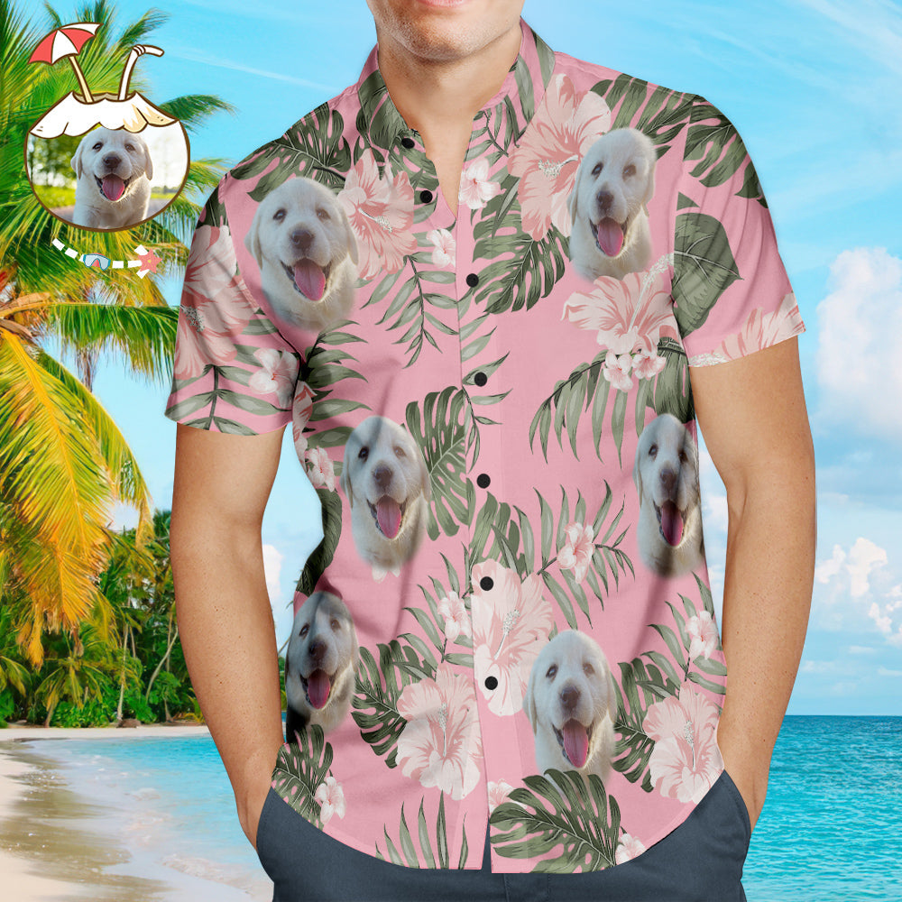Custom Dog Face Hawaiian Style Pink Flowers Dog and Owner Matching Hawaiian Shirts