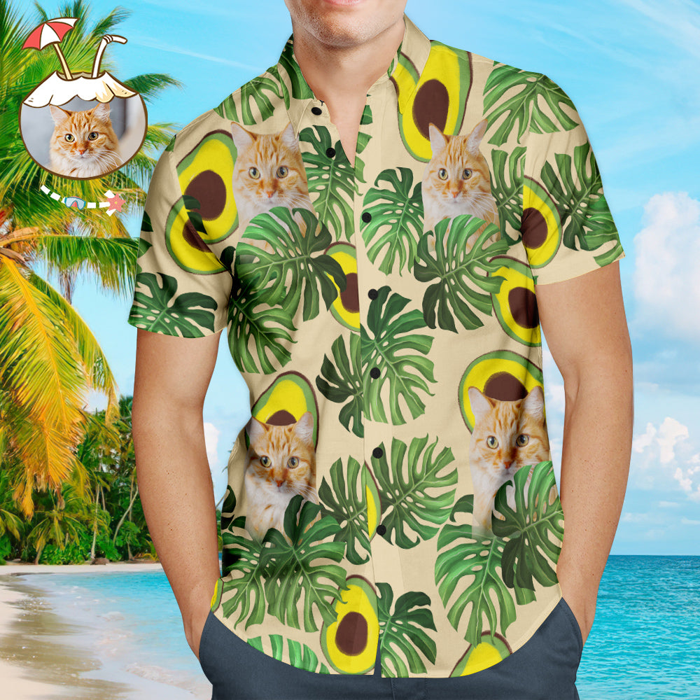 Custom Dog Face Hawaiian Style Avocado Dog and Owner Matching Hawaiian Shirts