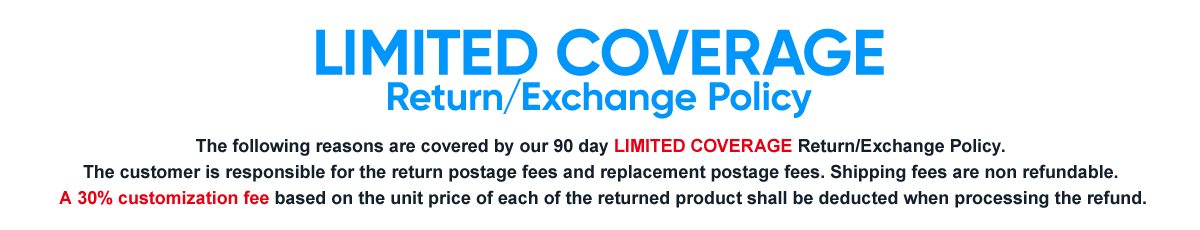 - Special note: Even if you contact us immediately after placing the order to cancel/modify the order, we will charge the corresponding production fee because the customized product will be produced immediately once the order is placed in order to ensure a timely production and delivery. Thanks for you understanding.