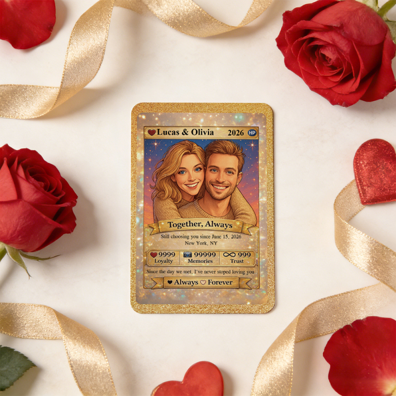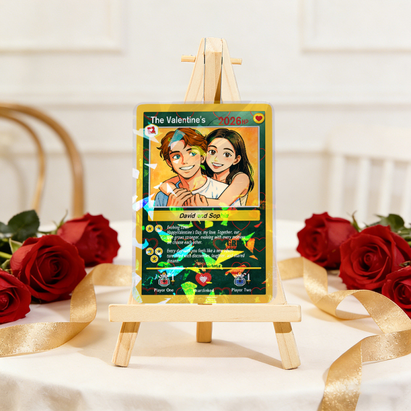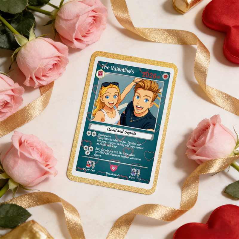 Personalized Valentine’s Day Power Couple Card, Custom Anniversary Card Couple Photo Anime Style, Best Valentine's Day Gift for Lover