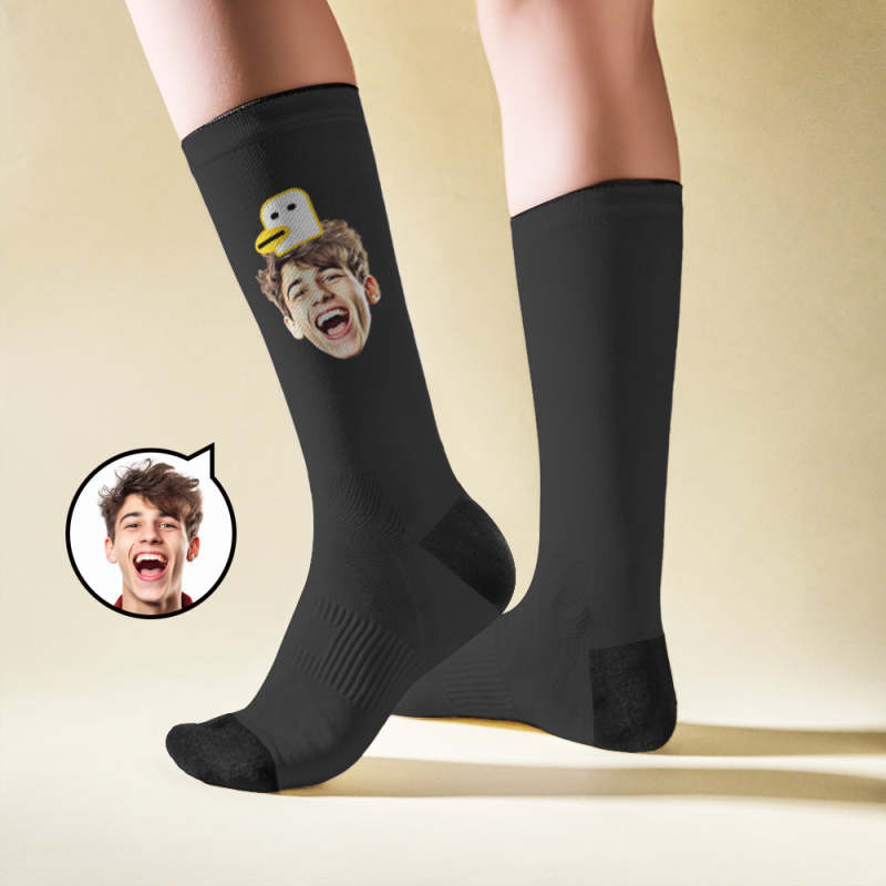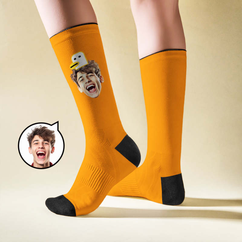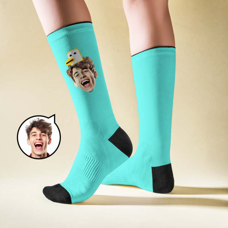 Custom Breathable Face Socks Duck Featuring Cartoon Imagery