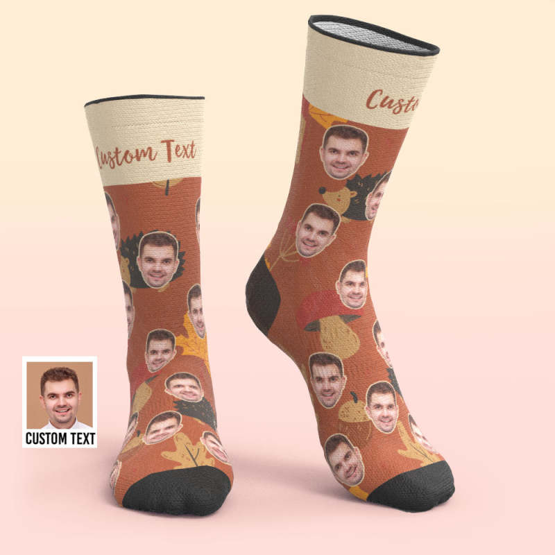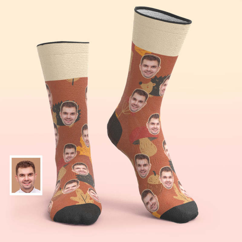 Custom Breathable Face Socks Forest Hedgehog Socks -