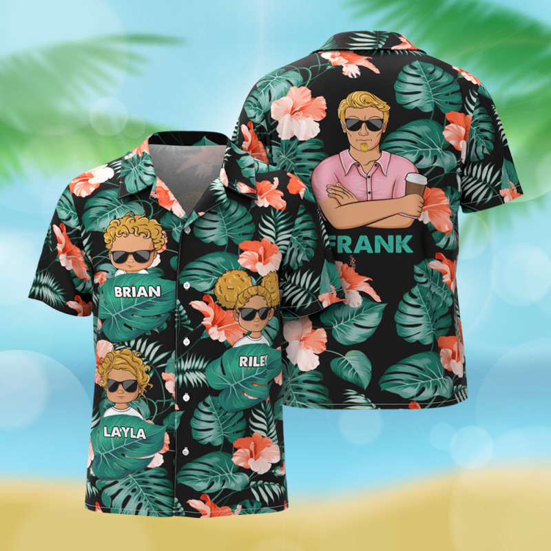Custom Cartoon Hawaiian Shirt Best Dad Papa Ever Birthday Loving Gift For Father Grandpa Grandfather Custom Name Hawaiian Shirt