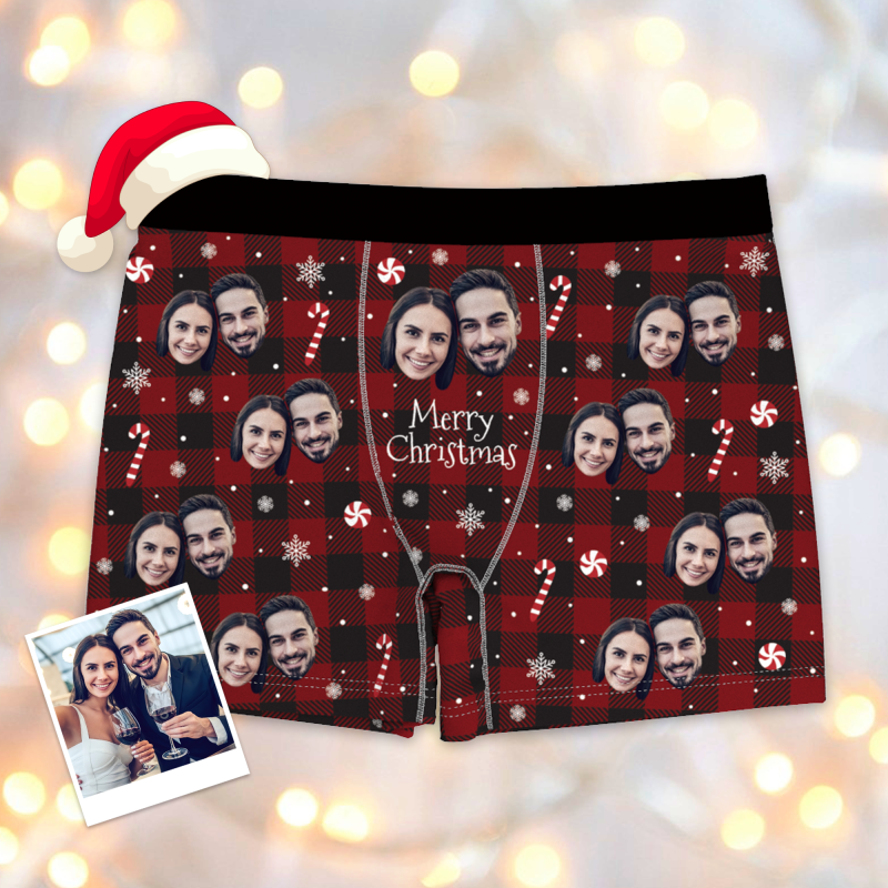 Custom Couple Face Boxer Shorts Christmas Gift
