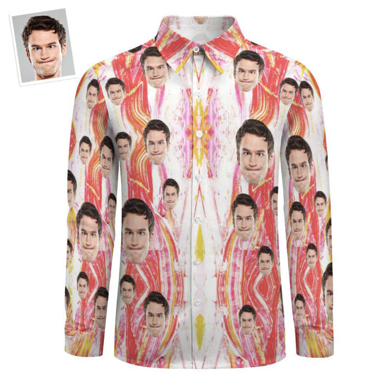 Custom Face All Over Print Large Long Sleeve Shirt Abstract Paint Brush Texture -