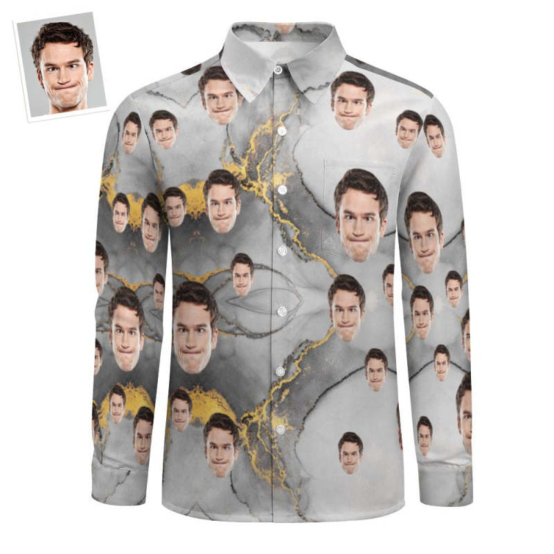 Custom Face All Over Print Large Long Sleeve Shirt Black Gold Abstract Fluid Art -