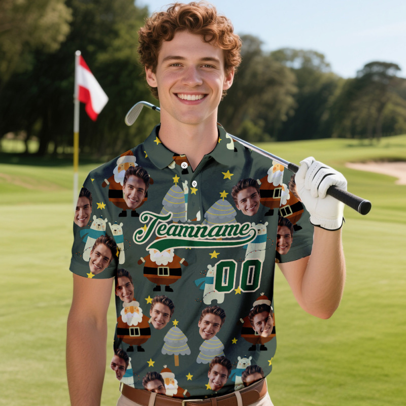 Custom Face and Text Dark Green Santa Claus Christmas Polo Christmas Santa Claus Performance Golf Polo Shirt