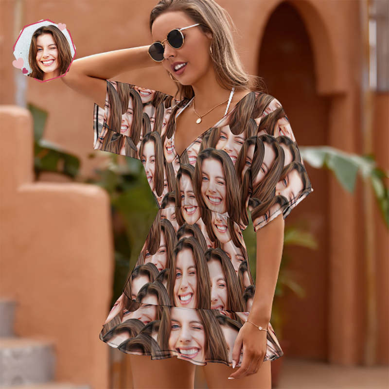 Custom Face Beach Wrap Hawaiian Style Face Mash Cover Ups