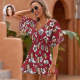 Custom Face Beach Wrap Hawaiian Style Flowers And Leaves Red Cover Ups