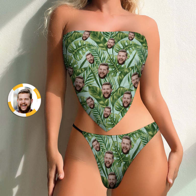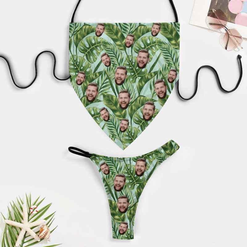 Custom Face Bikini Hawaiian Style Tropical Plants Leaves Bikini Swimwear - Custom Face Bikini Hawaiian Style Tropical Plants Leaves Bikini Swimwear -