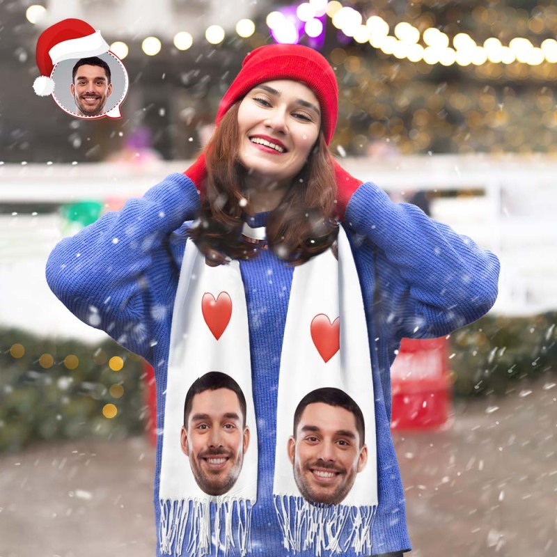 Custom Face Christmas Heart Scarf Personalized Gifts