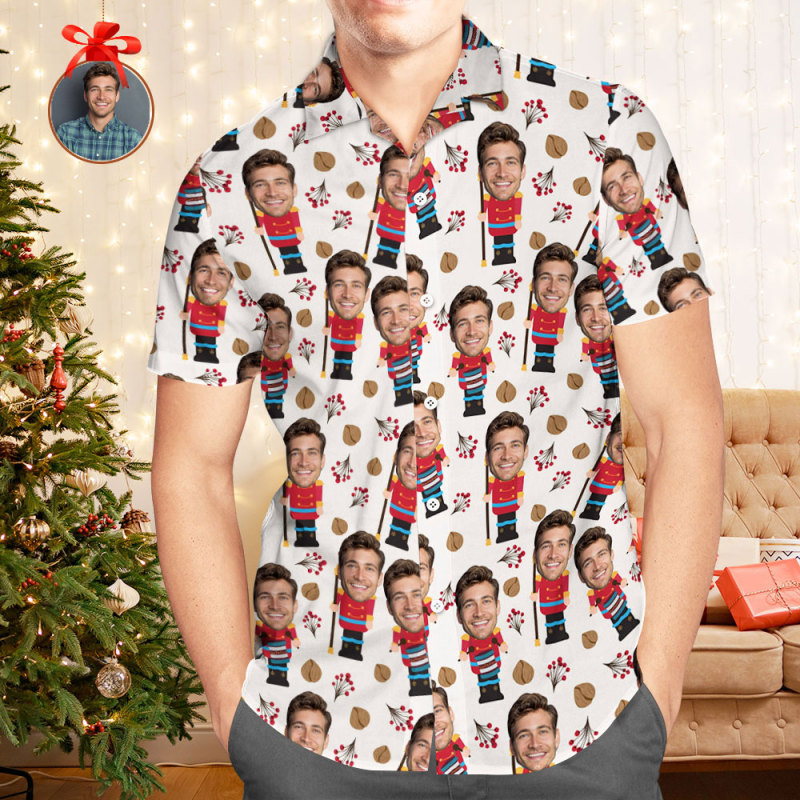 Custom Face Christmas Shirt Pattern with Nutcracker Shirt Xmas Gift for Family Friends Personalized Face Hawaiian Shirt Gift