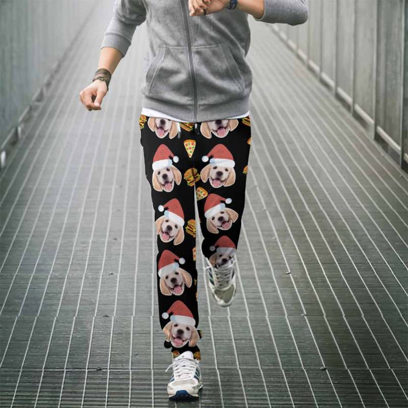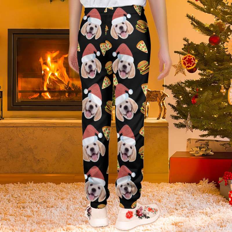 Custom Face Christmas Sweatpants Unisex Joggers with Pizza and Burger