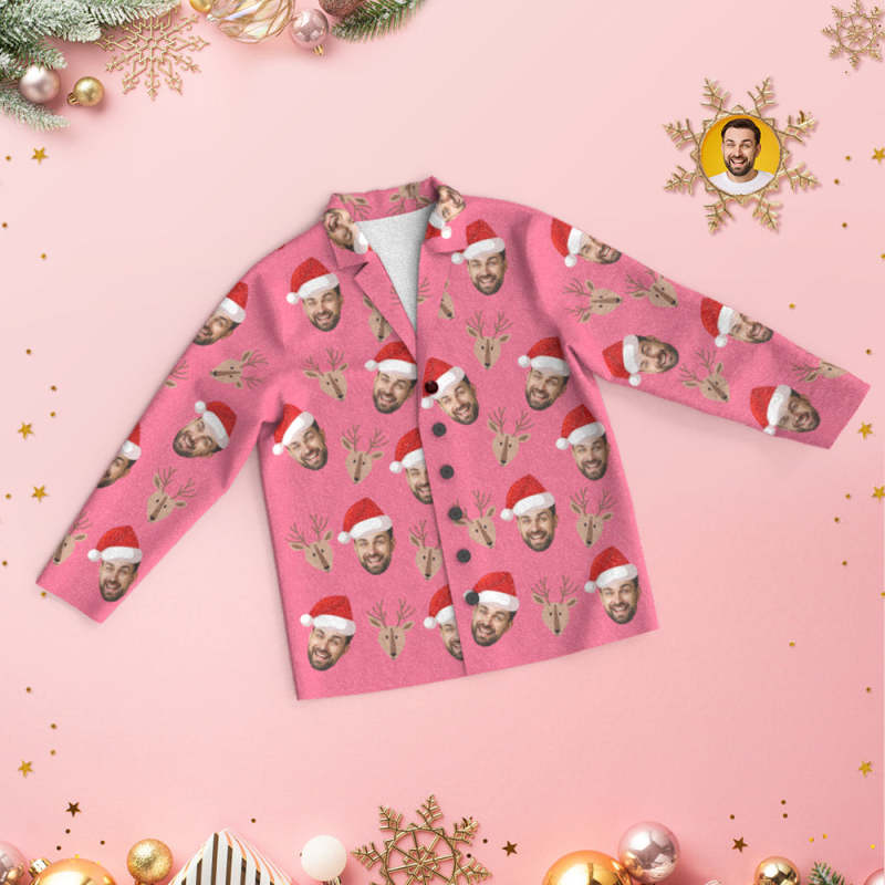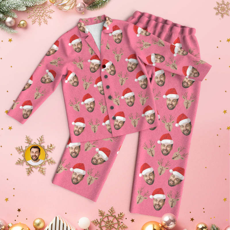 Custom Face Deer Pajamas Personalized Pink Pajamas Women Men Set Christmas Gift