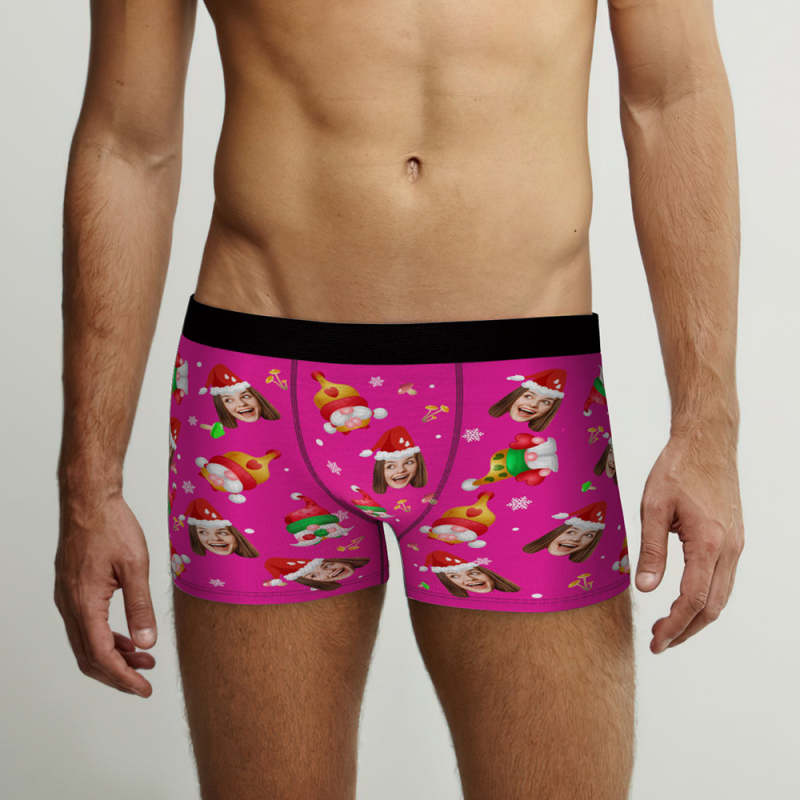Custom Face Happy Gnomes Pink Christmas Boxer Briefs Personalized Christmas Gift - Custom Face Happy Gnomes Pink Christmas Boxer Briefs Personalized Christmas Gift -