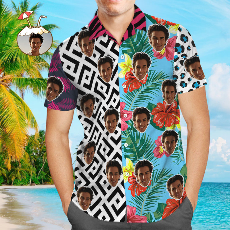 Custom Face Hawaiian Shirt Colorful Hawaiian Shirt Patchwork Pattern Style Shirt