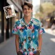 Custom Face Hawaiian Shirts Flamingo Leaves Blue Hawaiian Shirt