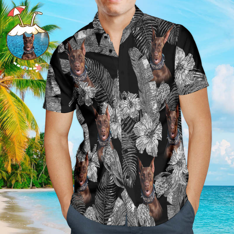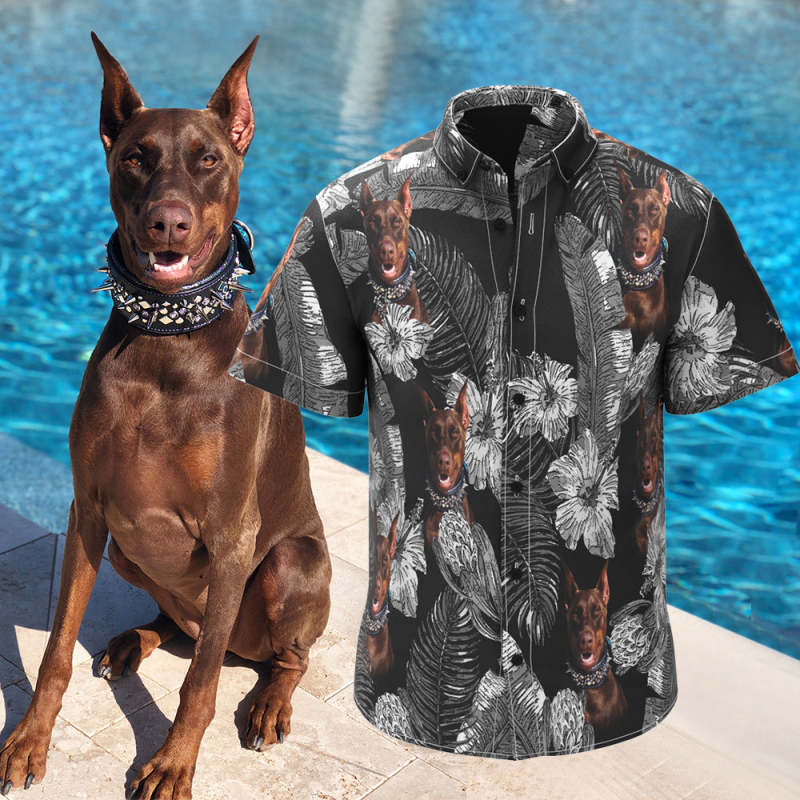 Custom Dog Face Hawaiian Style Flowers Dog and Owner Matching Hawaiian Shirts