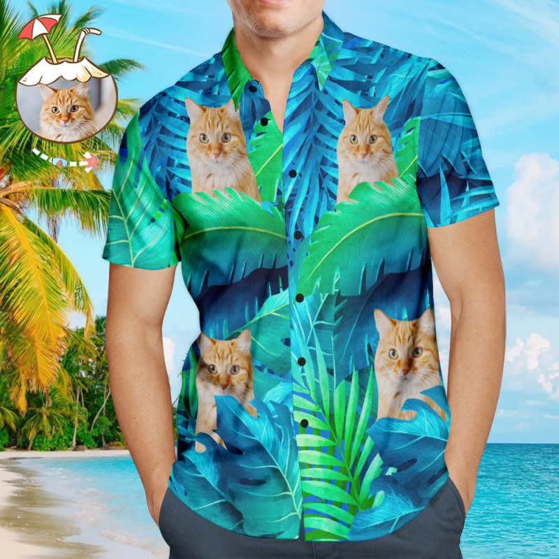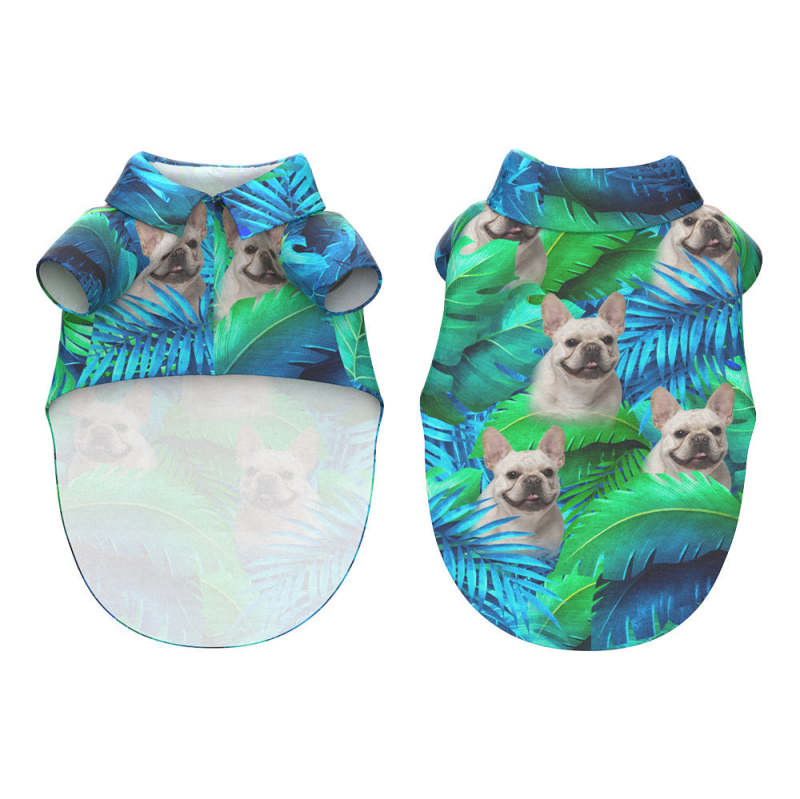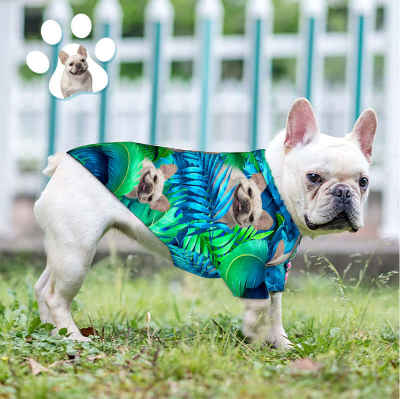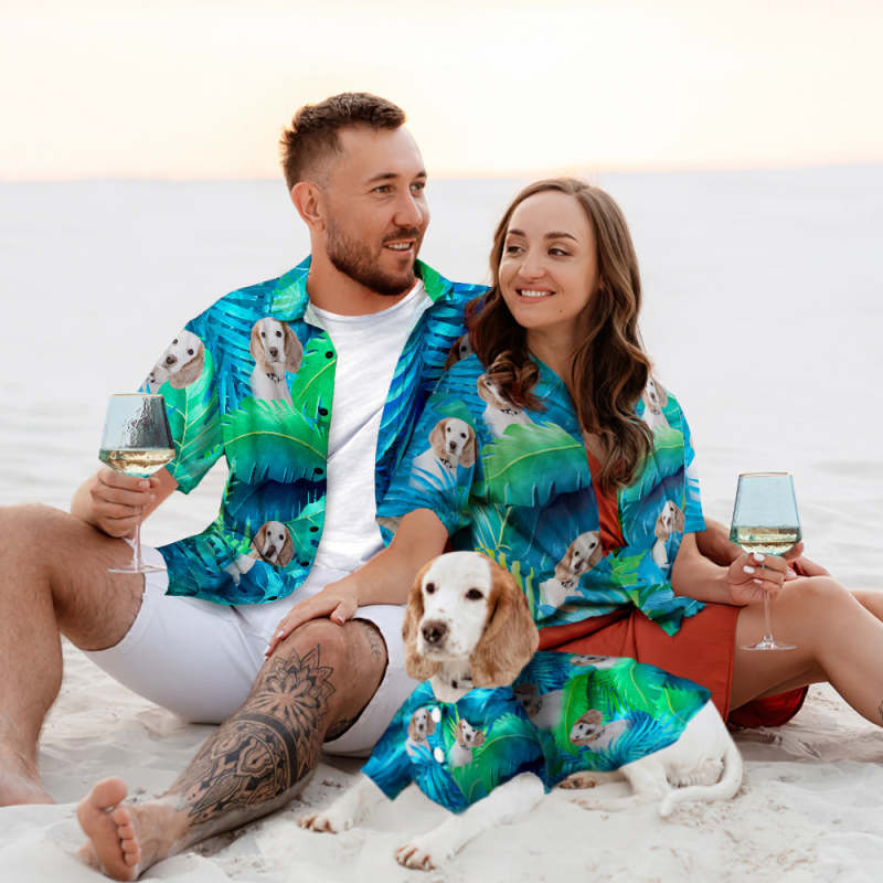 Custom Face Hawaiian Style Large Leaves Dog and Owner Matching Hawaiian Shirts