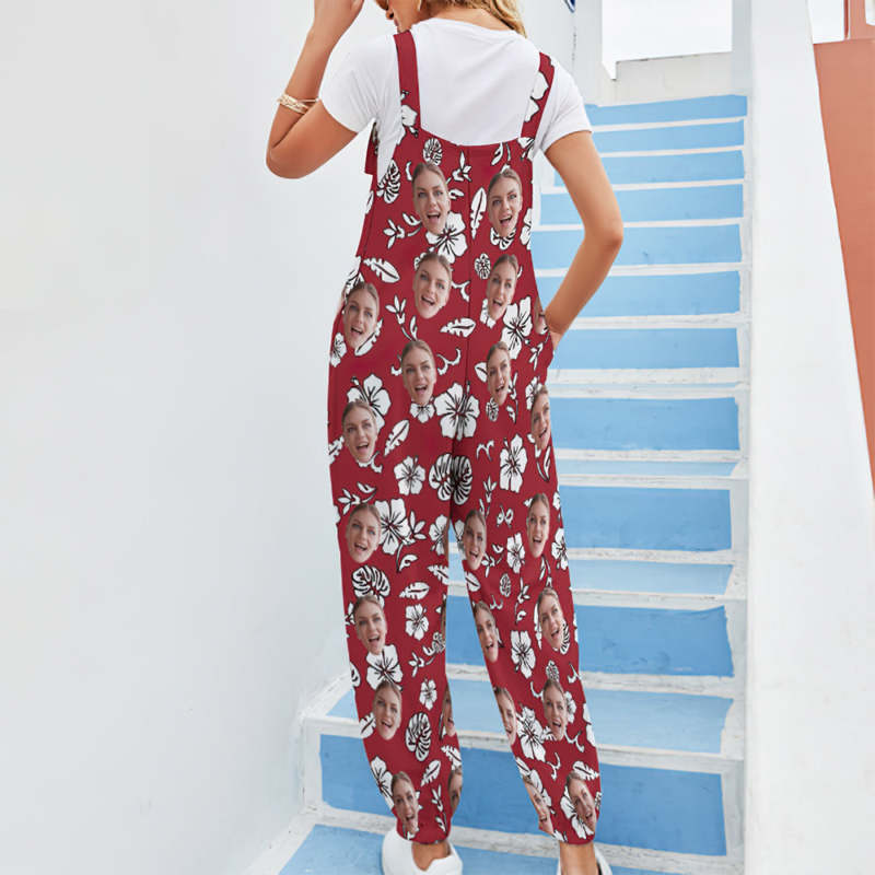 Custom Face Jumpsuit With Suspender Hawaiian Style Flowers And Leaves Red Rompers - Custom Face Jumpsuit With Suspender Hawaiian Style Flowers And Leaves Red Rompers - Custom Face Jumpsuit With Suspender Hawaiian Style Flowers And Leaves Red Rompers - Custom Face Jumpsuit With Suspender Hawaiian Style Flowers And Leaves Red Rompers -