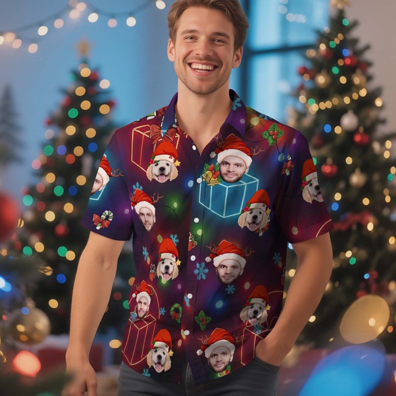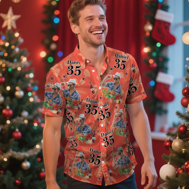 Custom Face Light Pink Age and Name Hawaiian Shirt Personalized Men Hawaiian Shirt With Face Photo Hawaiian Shirt Aloha Shirt Birthday Christmas Gift