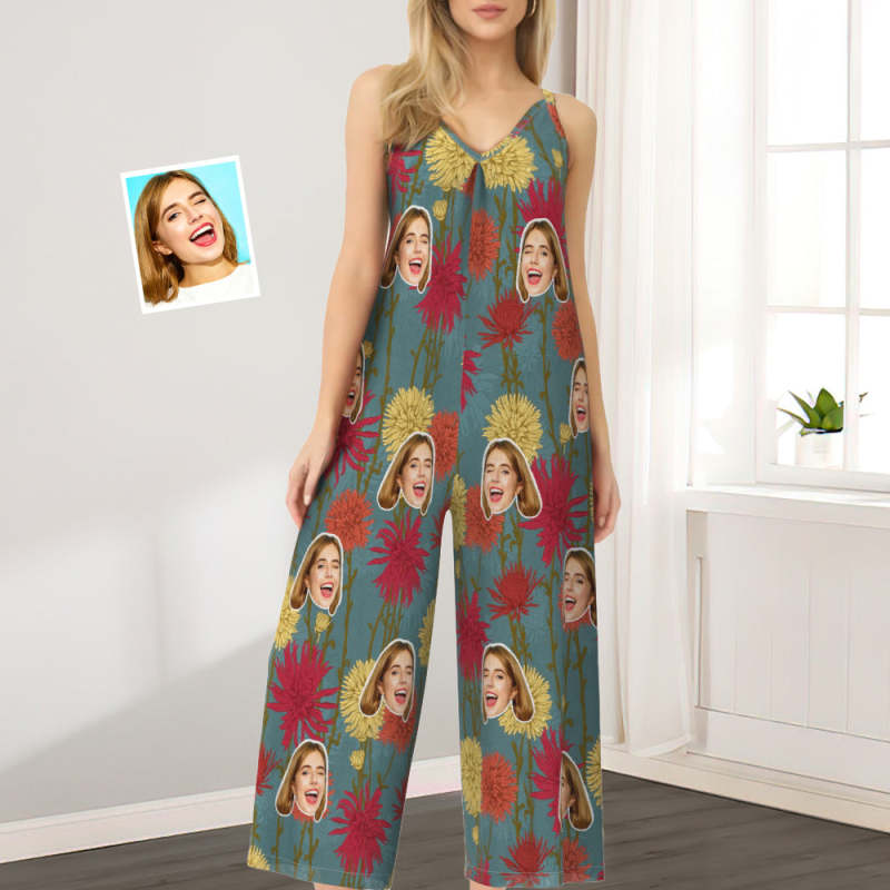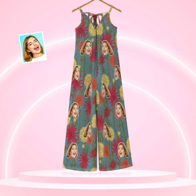 Custom Face Loose Jumpsuit With Wide Leg Vintage Flowers Rompers - Custom Face Loose Jumpsuit With Wide Leg Vintage Flowers Rompers - Custom Face Loose Jumpsuit With Wide Leg Vintage Flowers Rompers -
