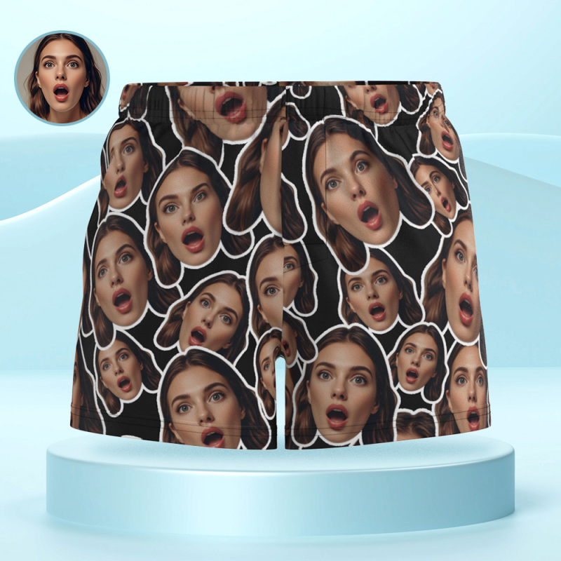 Custom Face Mash White Boxer Shorts Personalized Waistband Casual Underwear Valentine for Him
