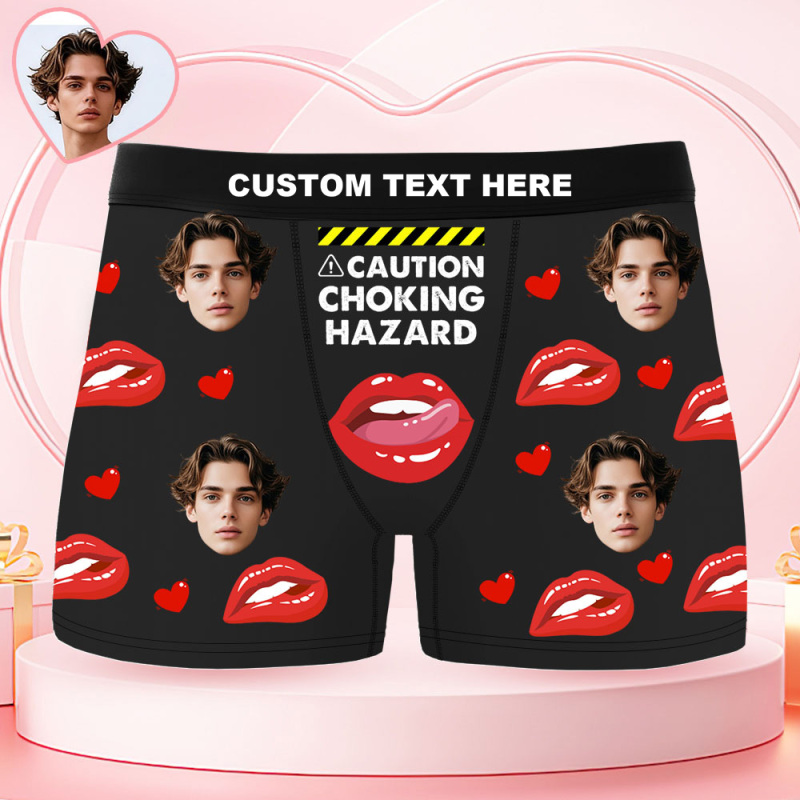 Custom Face Men's Boxer Underwear CAUTION CHOKING HAZARD Red Lip Boxer Gift Personalized Photo Funny Men's Boxer Briefs