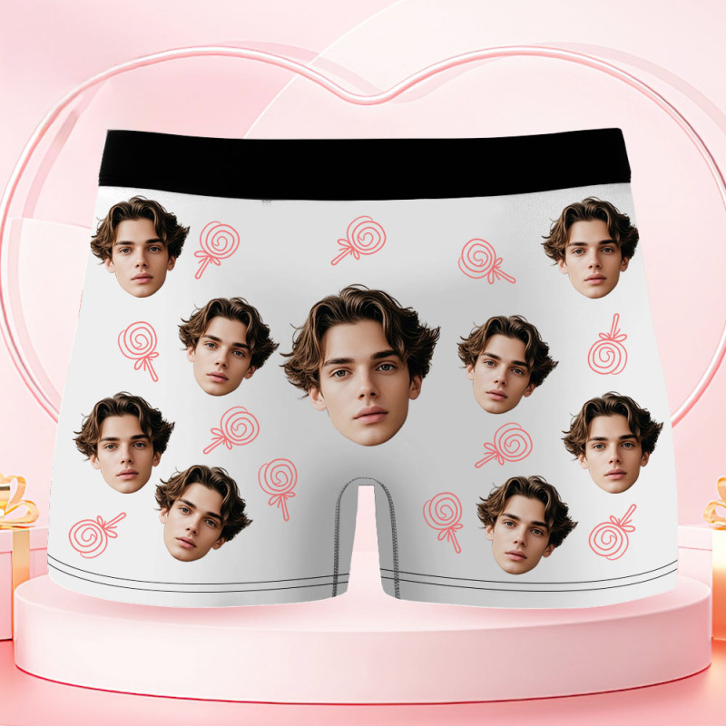 Custom Face Men's Boxer Underwear Her Lollipop Boxer Gift Personalized Photo Funny Men's Boxer Briefs