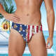Custom Face Men's Swimming Trunks Personalized American Flag Pattern Triangle Swim Briefs