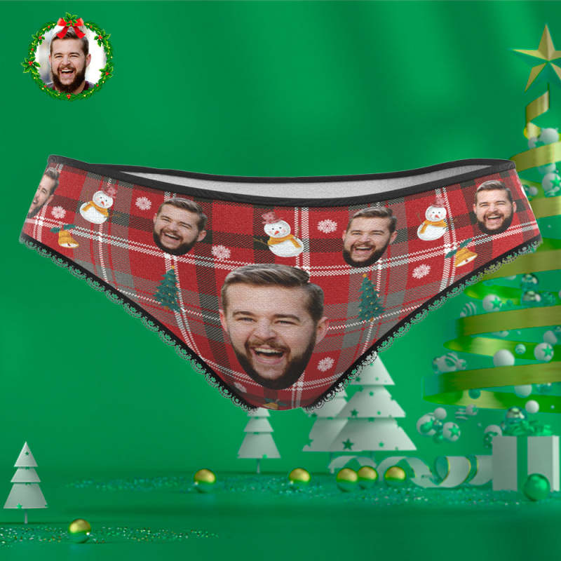 Custom Face Panties Snowman Print Christmas Red Plaid