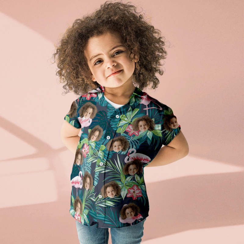 Custom Face Shirt Kid's Hawaiian Shirt Flamingo Flower