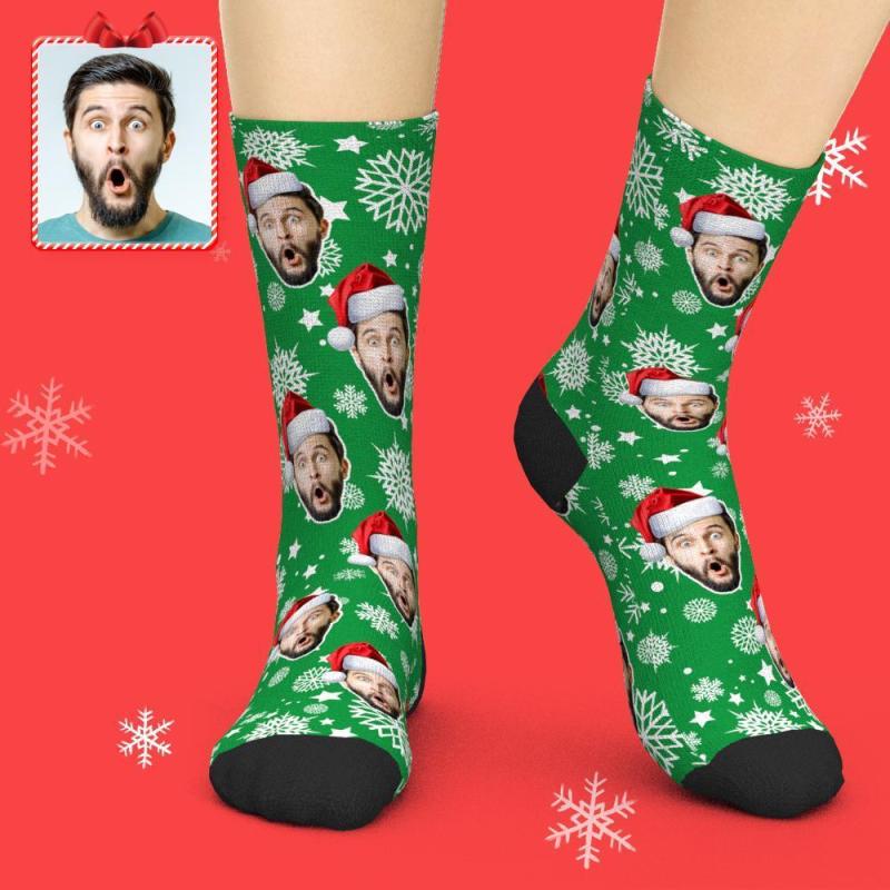 3D Preview Custom Face Socks Add Pictures Christmas Socks - Santa Hat