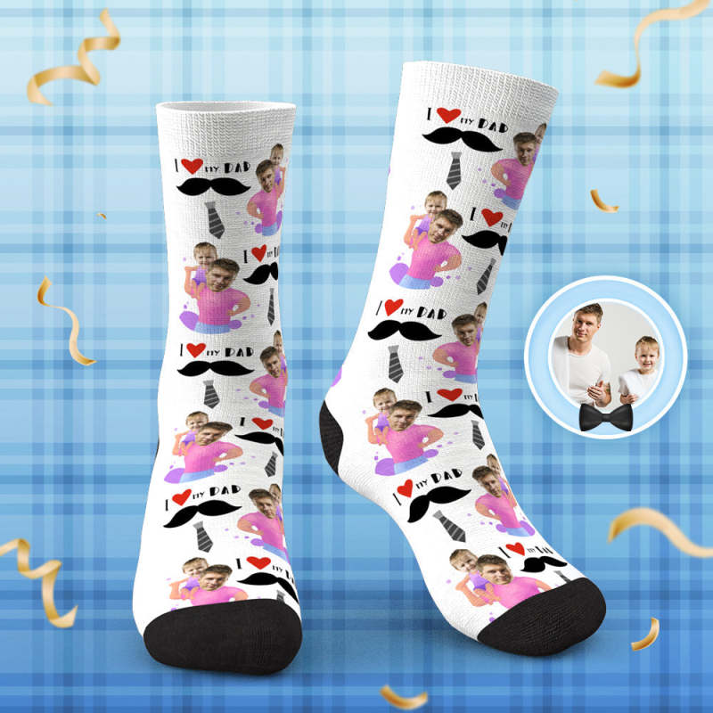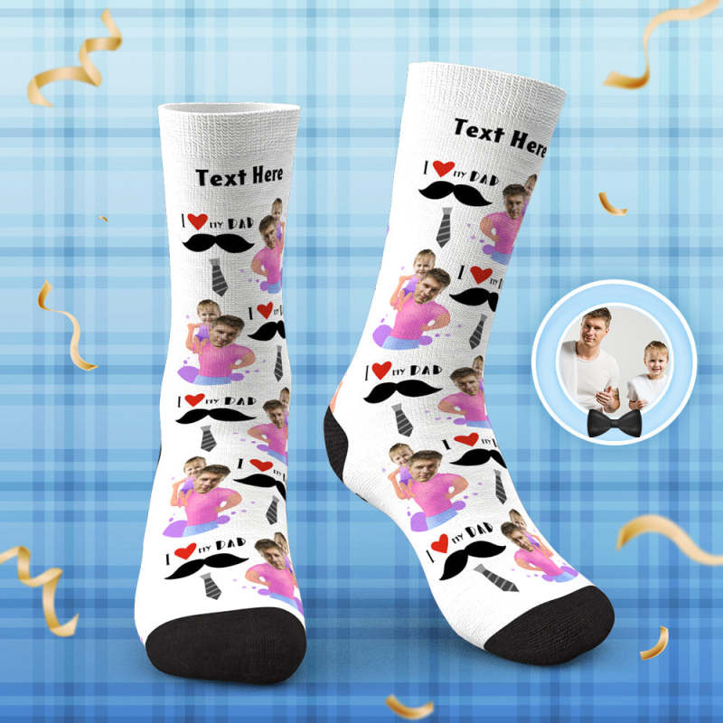 Custom Face Socks Mustache And Tie I Love My Dad