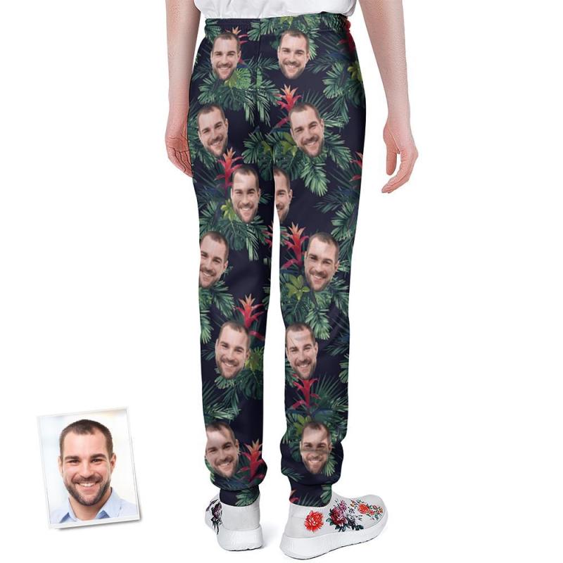 Custom Face Sweatpants Personalized Leaves Design Unisex Joggers - Gift for Lover