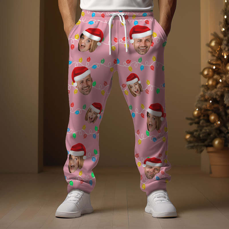 Custom Face Sweatpants Personalized Photo Christmas Family Xmas Leds Golf Pants for Him