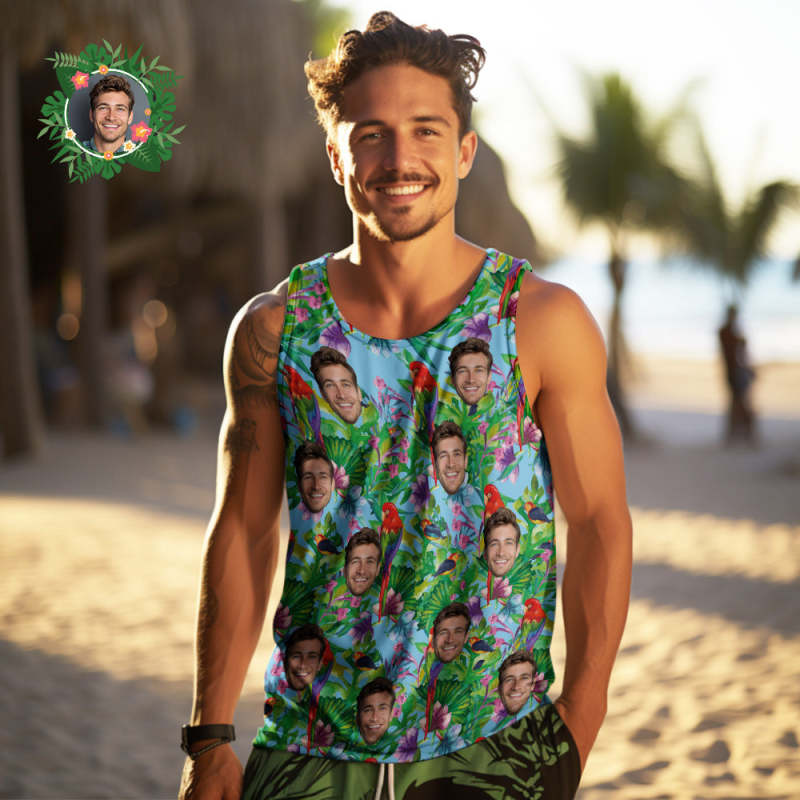 Custom Face Tank Tops Men's Sleeveless Shirt Parrot