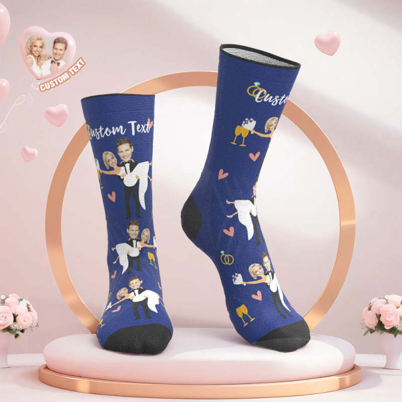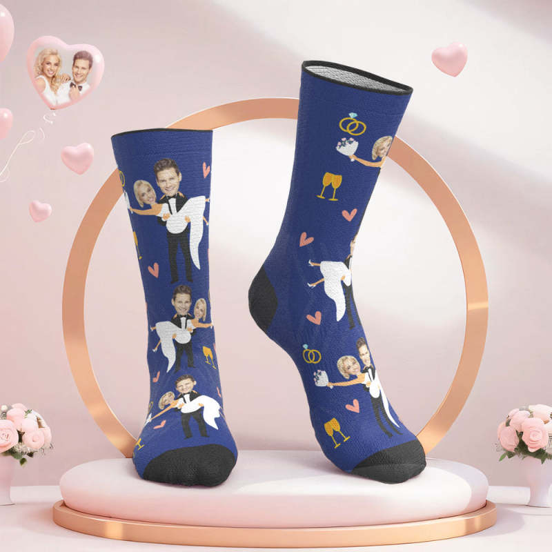 Custom Face Wedding Socks Couple Face Hug Love Socks