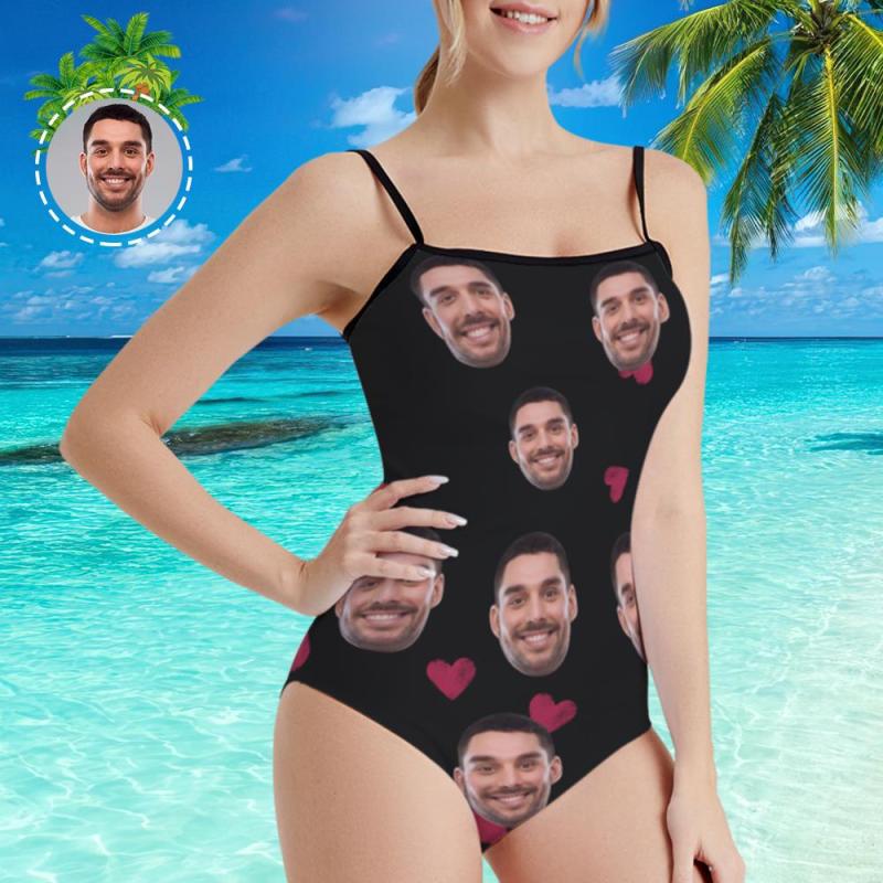 Custom Face Swimwear Women's Photo Slip One Piece Swimsuit Gift For Her - Heart