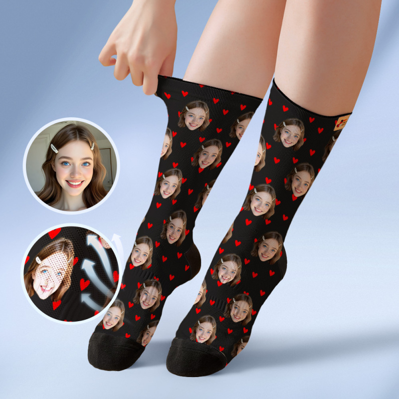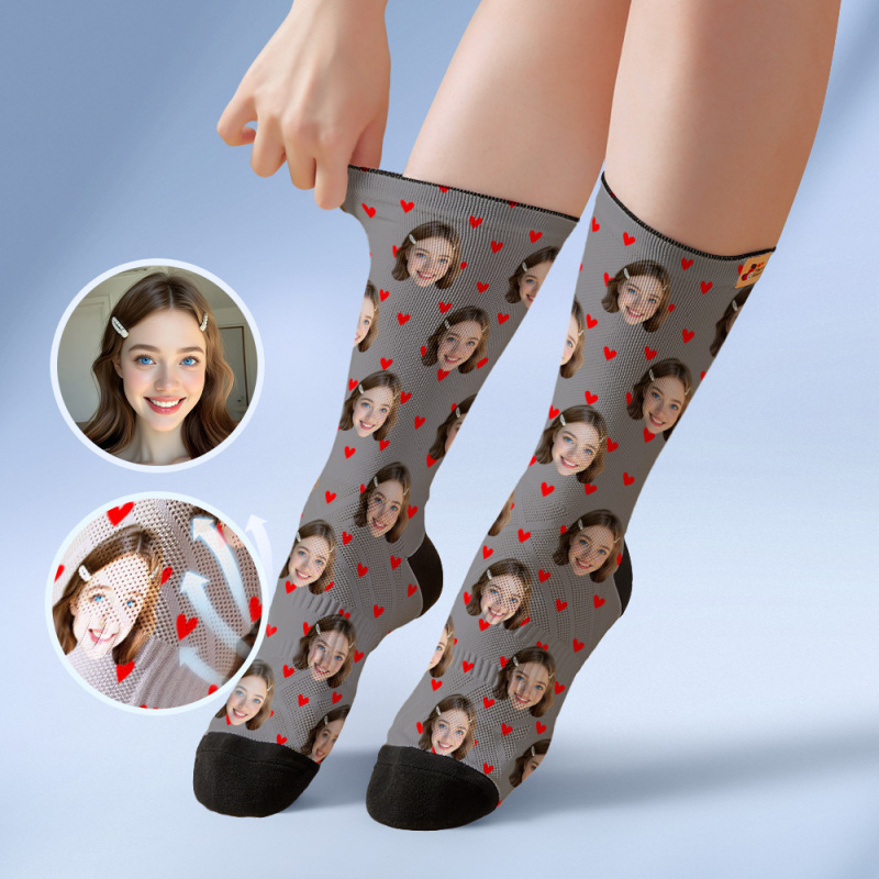 Custom Heart Face Socks Personalized White Socks with Faces Photo Funny Gift Photo Couple Family Socks