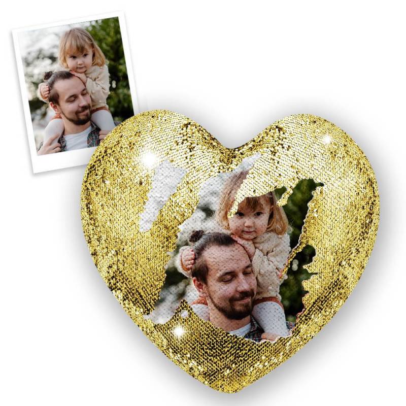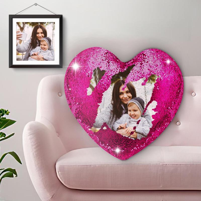 Custom Heart Love Photo Magic Sequins Pillow