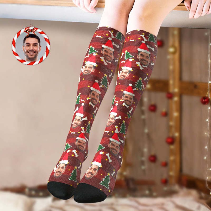 Custom Knee High Socks Personalized Face Christmas Socks Christmas Tree