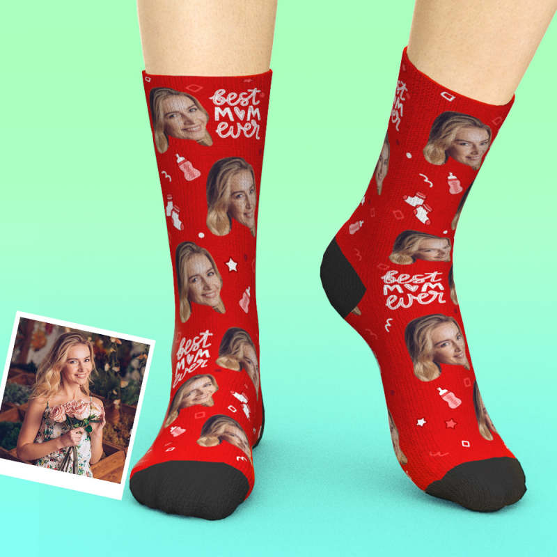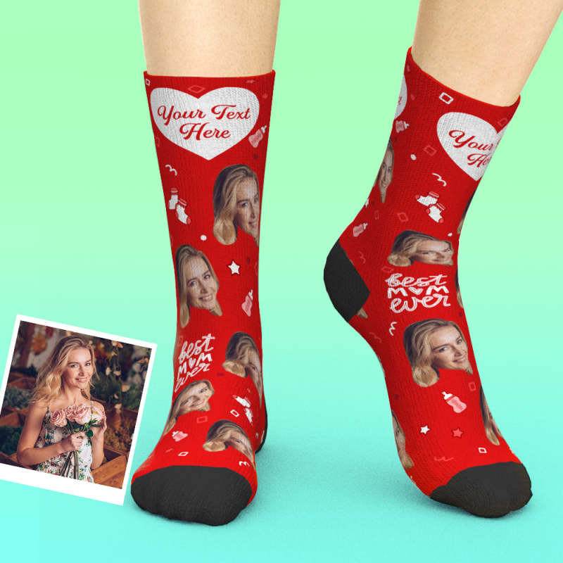 Custom Mom Photo Socks With Text Mother's Day Gifts