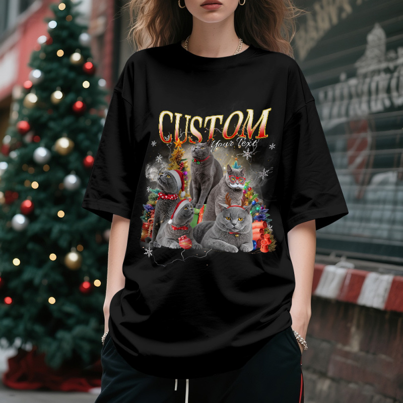 Custom Pet Owner T-Shirt Cute Cat Photo Perfect Christmas Gift for Pet Lovers Christmas Gift