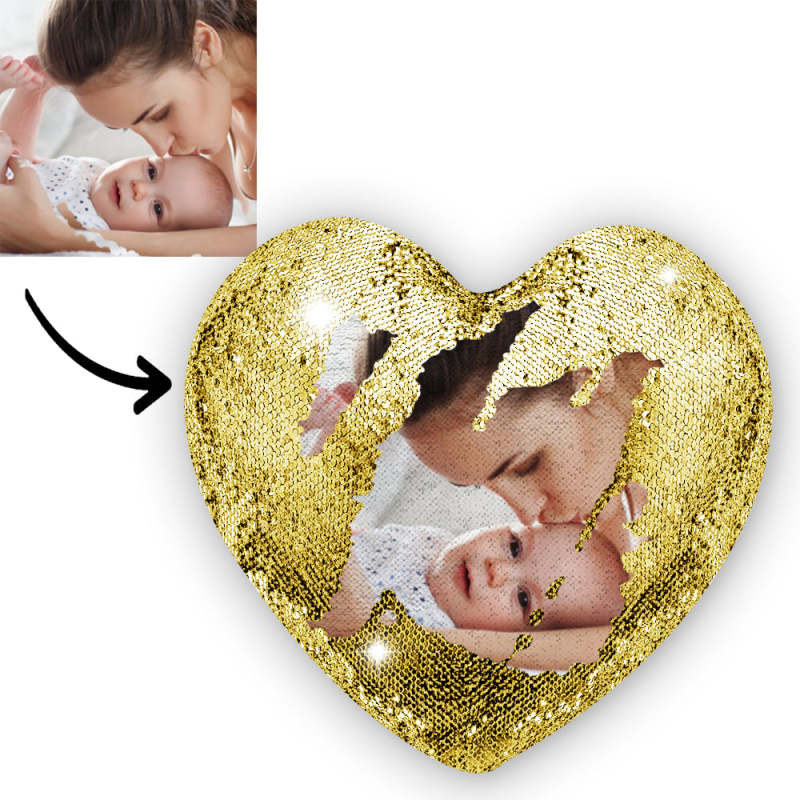 Custom Photo Magic Heart Sequin Pillow