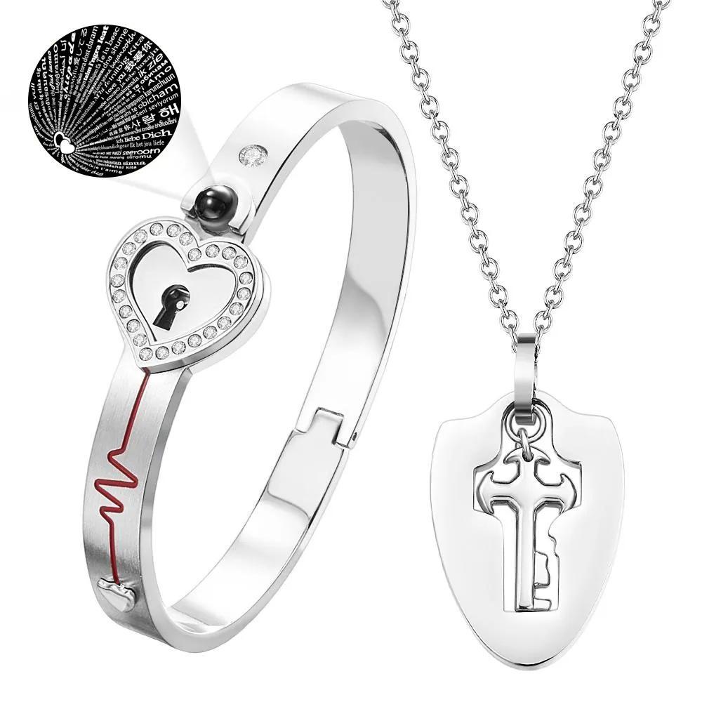 Custom Projection Couple Bracelets & Necklace Shield Key Pendant Necklace and Lock Bracelet You Hold the Key to My Heart Valentine's Day Gift