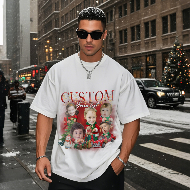 Custom Santa Photo Tee Retro Christmas Shirt Cute Christmas Kids Shirt Funny Personalised Xmas Gift for Couples Friends