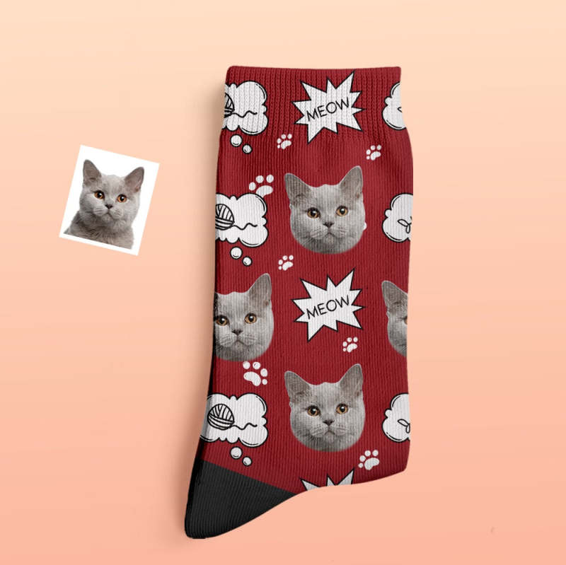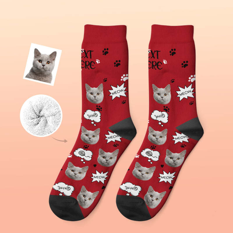 Custom Thick Socks Photo 3D Digital Printed Socks Autumn Winter Warm Socks Cat Meow