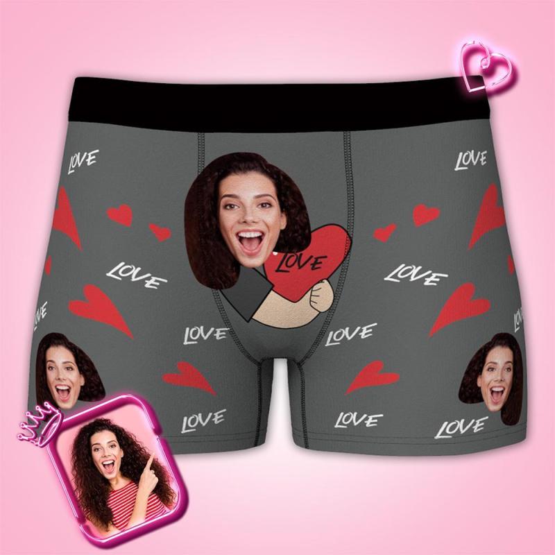 Custom Womens Valentines Day Love Heart Boxer Briefs Personalised Gifts For Boyfriend